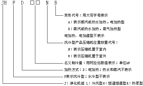 型號舉例:ZKZH55 表示名義制冷量為55kw的恒溫恒濕直膨式空調機組。